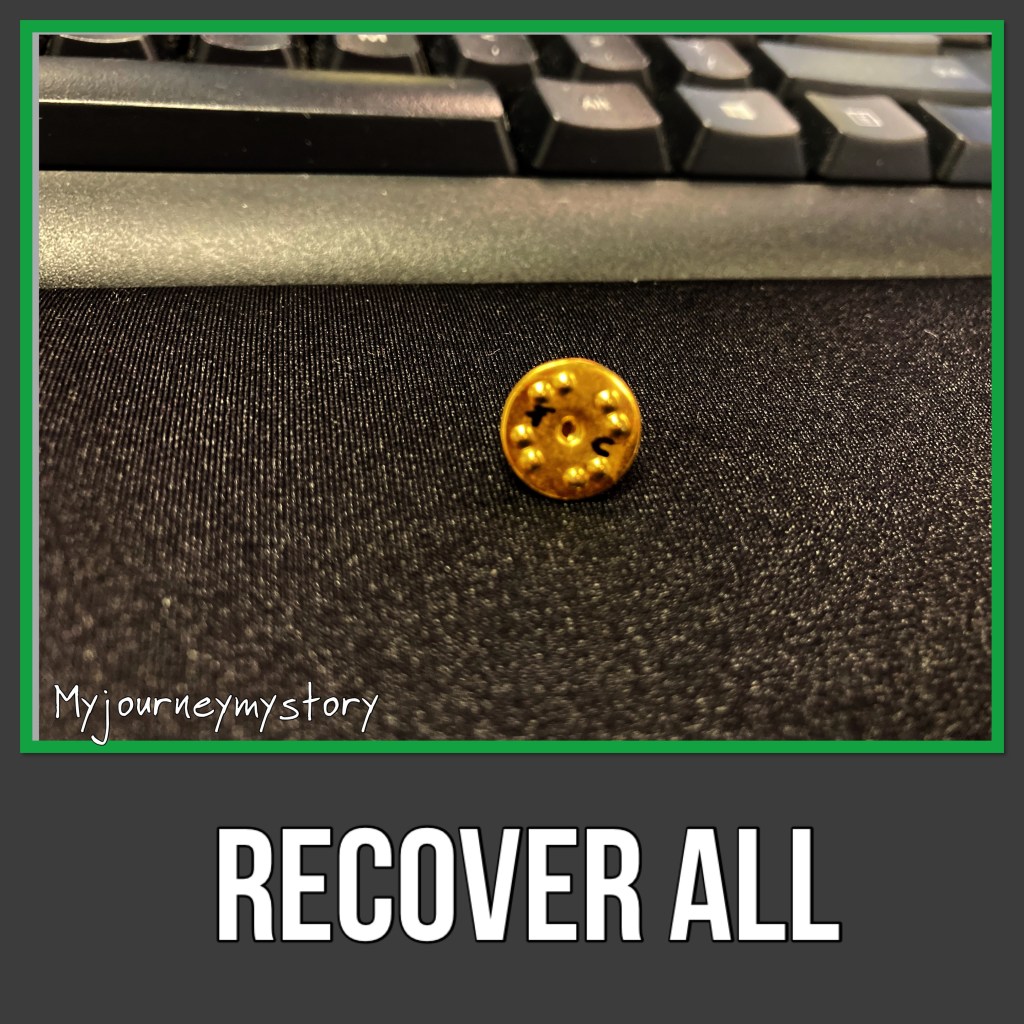 The gold breast cancer pin backing in the photo was lost in October as a coworker and I went to a nearby building while on break. I discovered it’s loss when the actual pin fell from my jacket a while later, however, I never found the backing. Fast forward over a month later. I walk into the bathroom in the building I work at after a long holiday weekend and low and behold I see something laying on the table: the backing to my pin! I quickly picked it up and sure enough, I see my initials on it. Recover All.